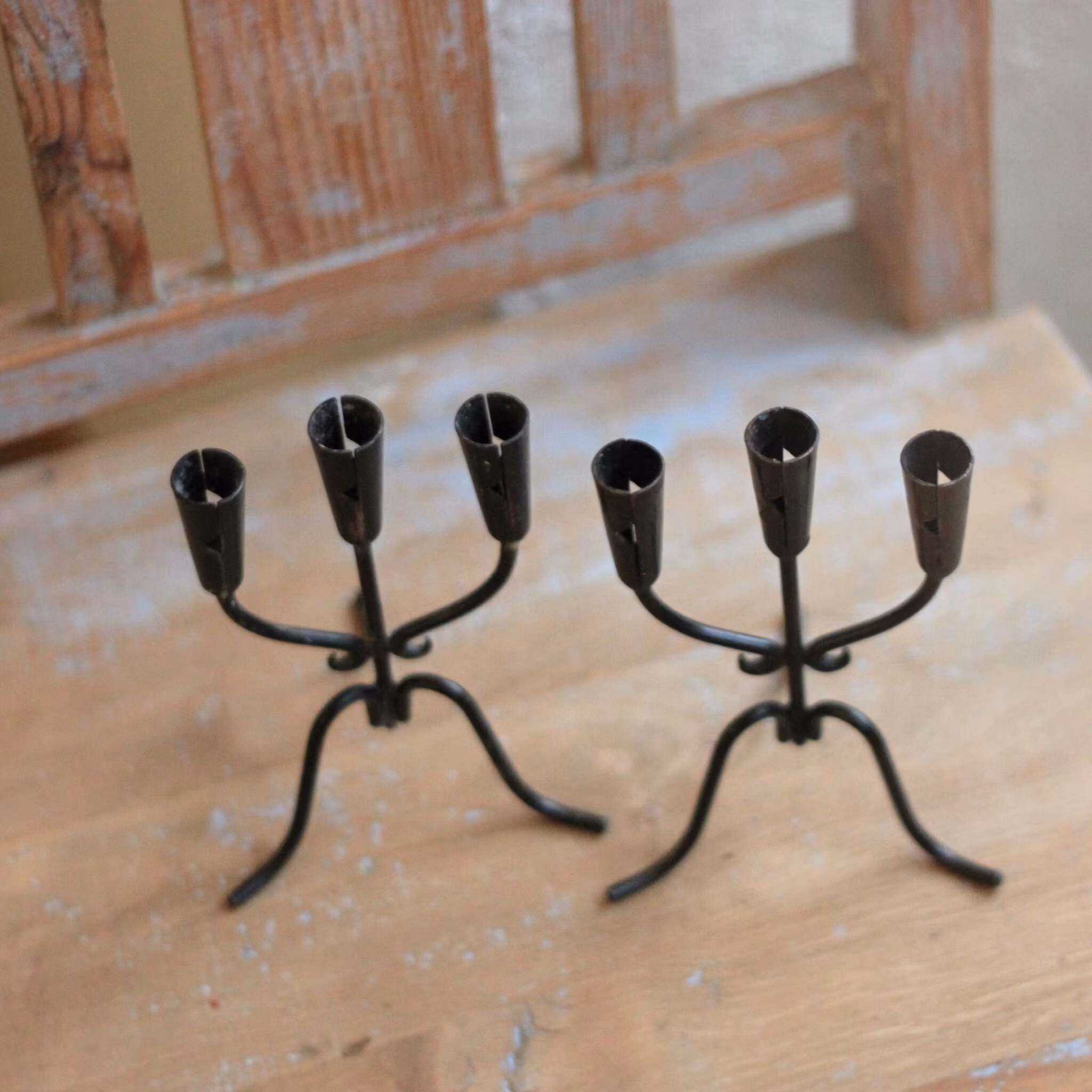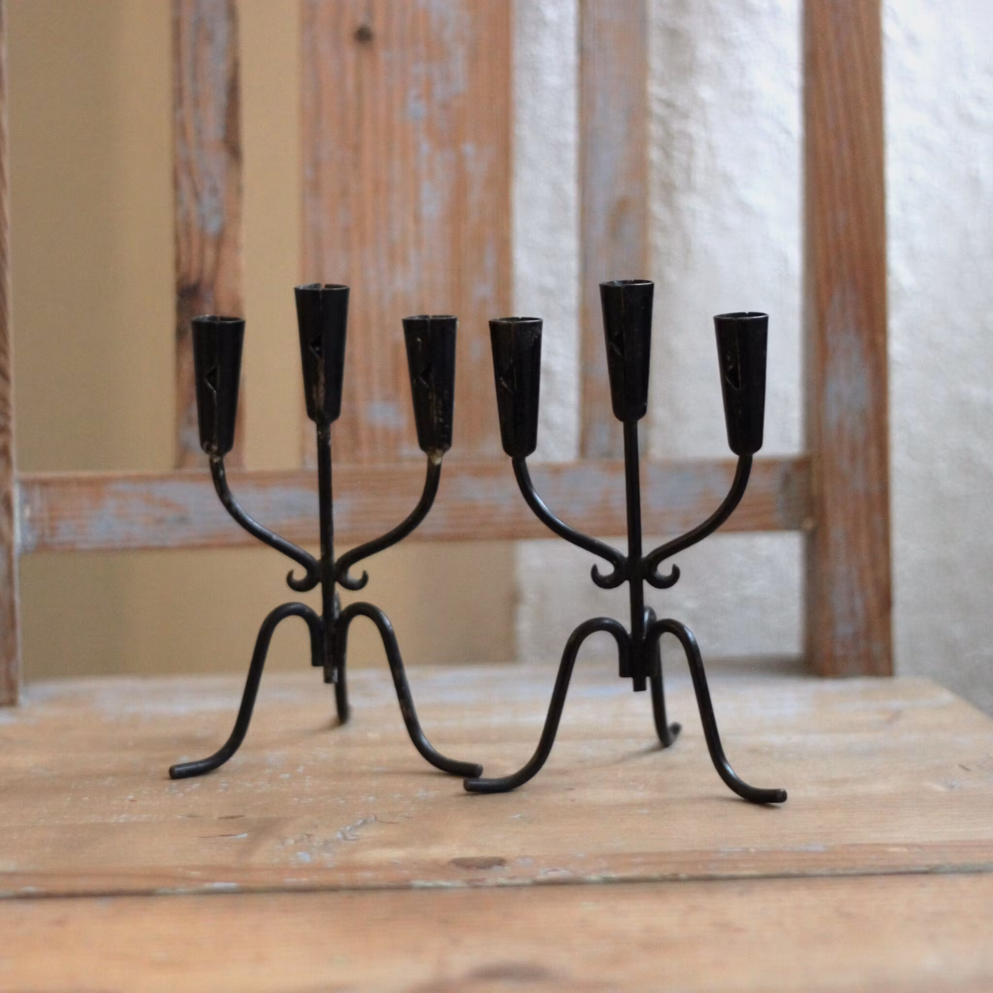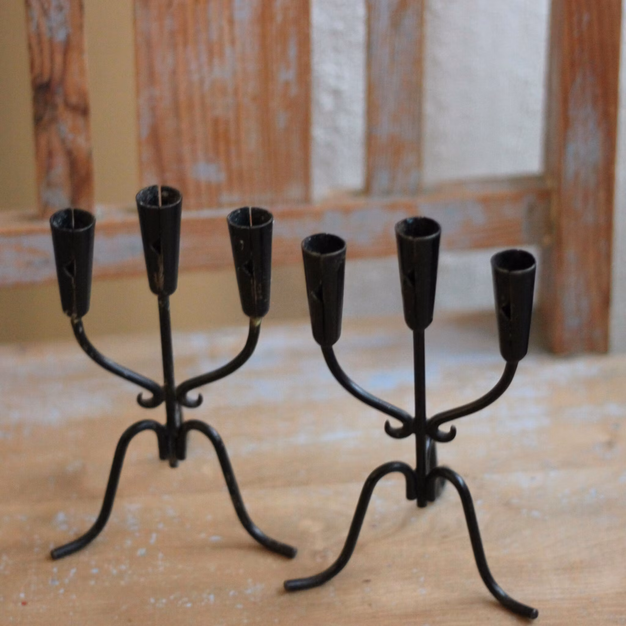 Treärmad ljusstake som känns både modern och lite allmoge. Ljusstaken, som är i svartmålad metall är lagom för julgransljus.