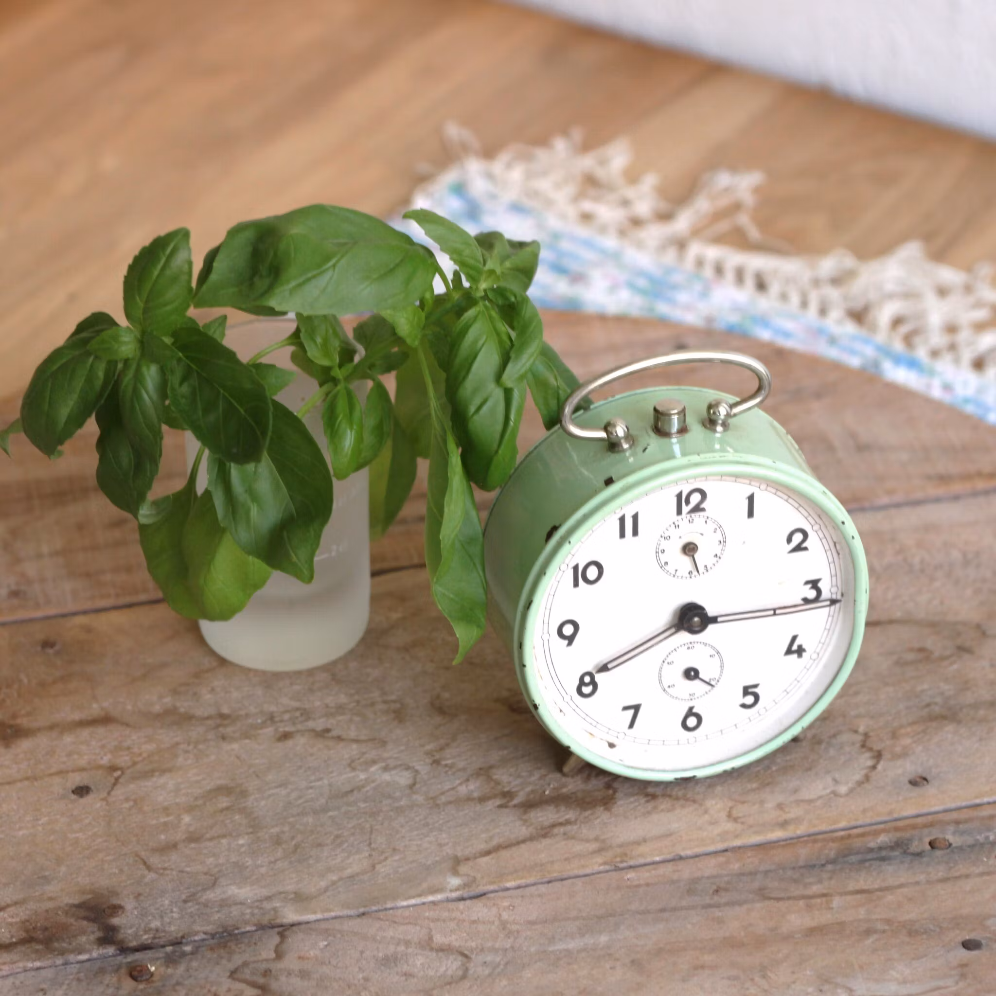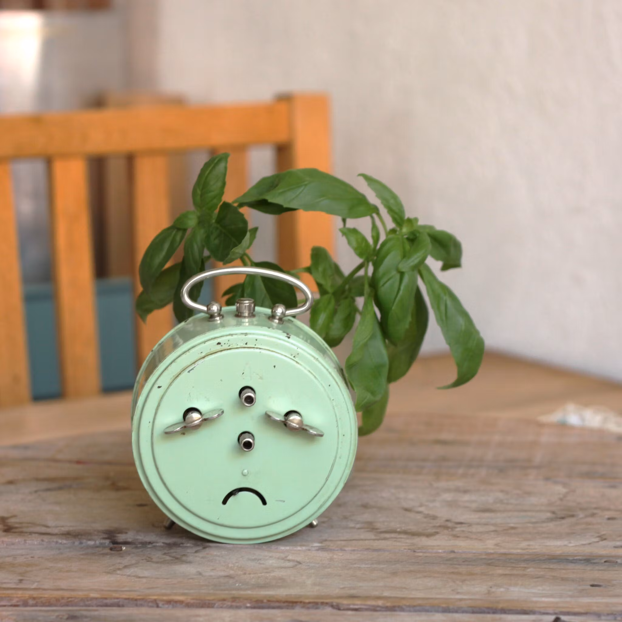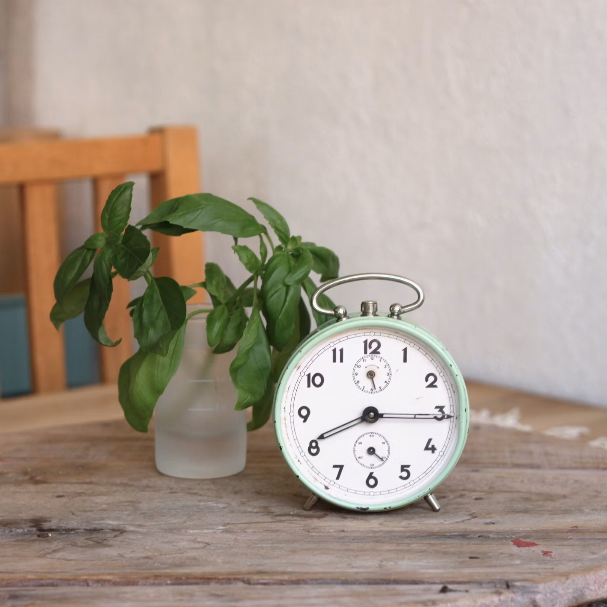 Har du bestämt dej för att inte längre ha mobilen i sovrummet? Då kanske en klassisk väckarklocka med ett riktig urtavla kan vara bra för att komma upp i tid. Klockan är i metall, målad lindblomsgrön och höjden inklusive handtag är ungefär 11cm.