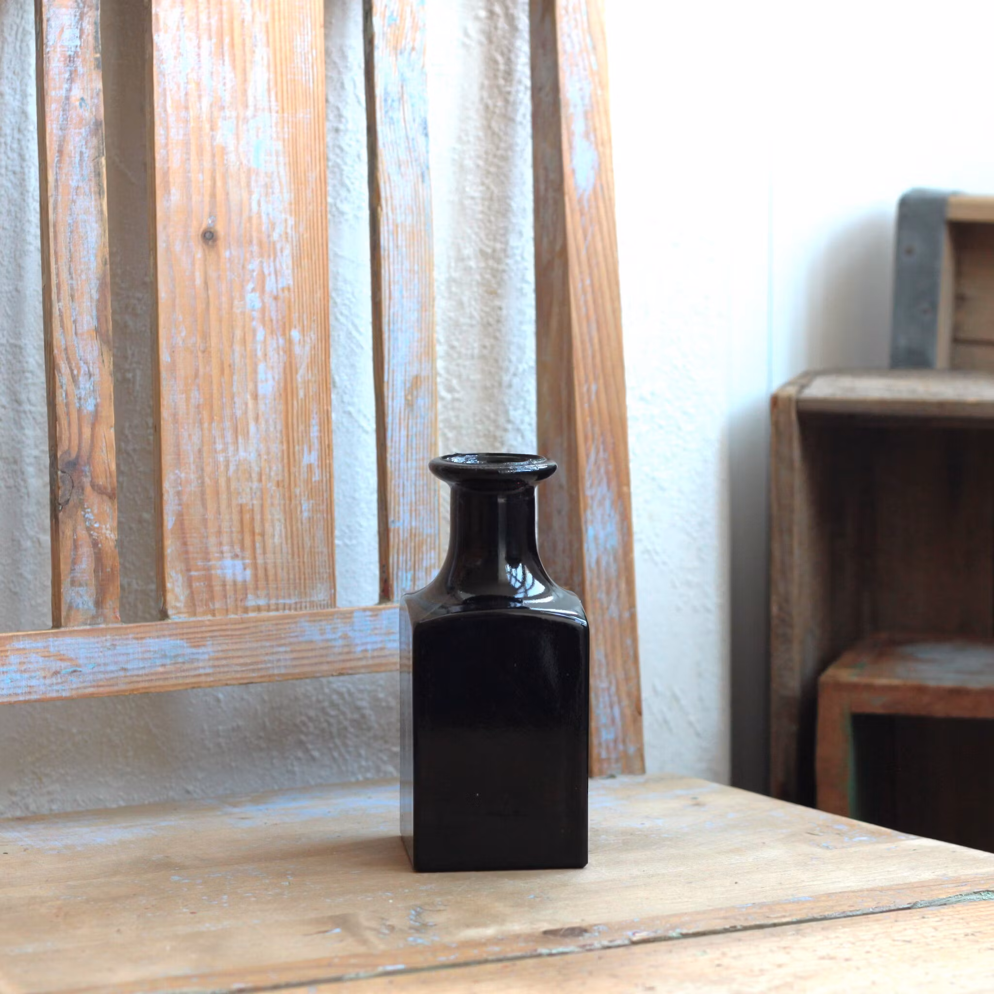 Vas - Flaska i Svart Glas 165 kr Produkten är tyvärr slut i lager. Detta är ett äldre, unikt föremål som genom åren använts, älskats och fått "patina". Den här typen av föremål säljs i befintligt skick.Snygg vas i form av flaska i tungt, tjockt svart glas. Vasen är fyrkantig och ca. 15cm hög.