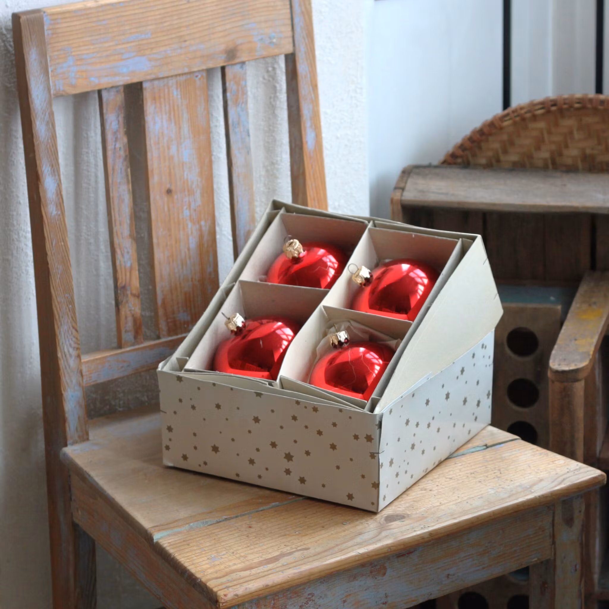 I lager. Antal: 1 Julgranskulor - Kulor röda 149 kr Lägg i korgen Detta är ett äldre, unikt föremål som genom åren använts, älskats och fått "patina". Den här typen av föremål säljs i befintligt skick.4 stycken stora vackra röda julgranskulor i glas. Asken de ligger i är ca 22x22x10cm.