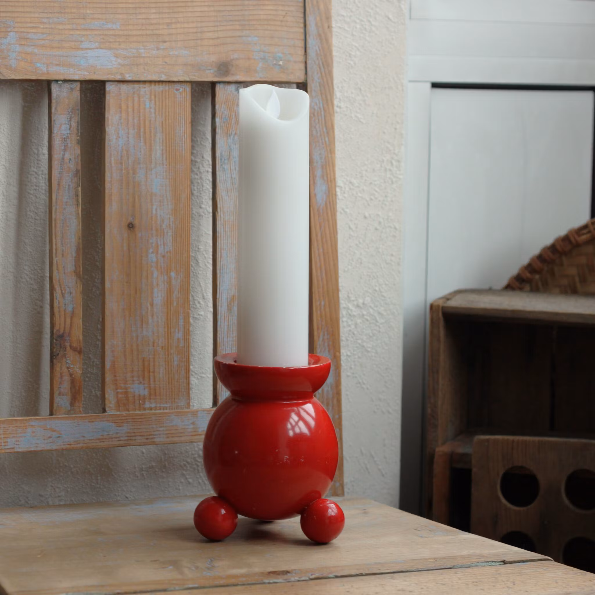 Röd klassisk rejält stor kulljusstake som passar fint in i de flesta hem. Denna röda träljusstake passar för ett blockljus som är högst 5cm i diameter. Ljusstaken är ca 12cm hög.