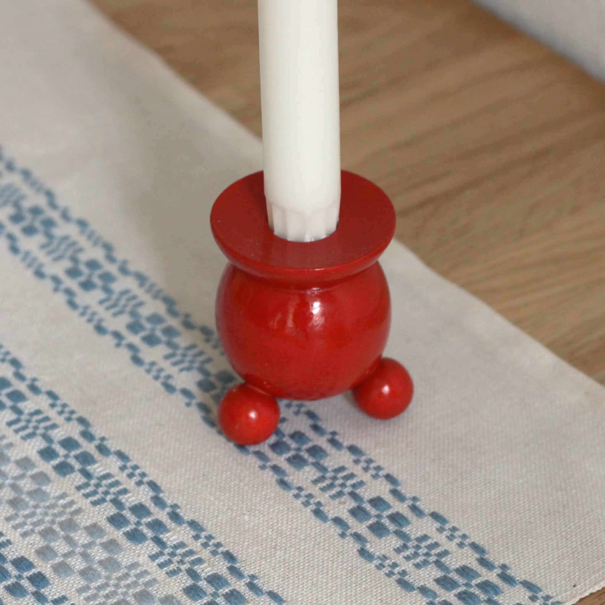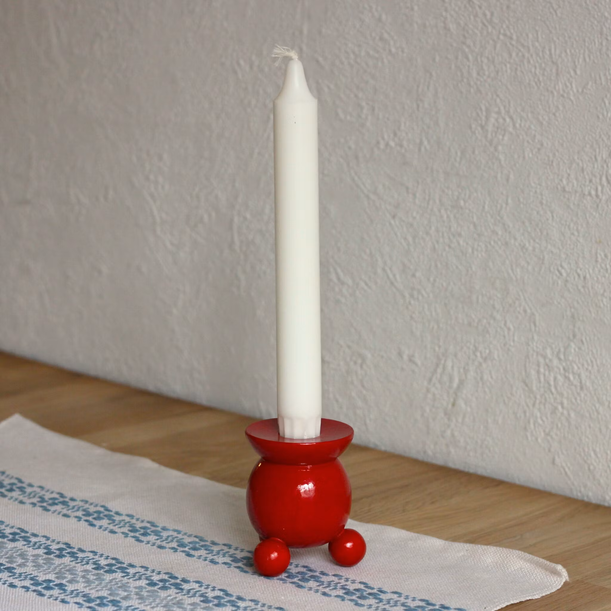 Röd klassisk rejält stor "kulljusstake" passar fint in i de flesta hem. Denna röda träljusstake passar för kron- eller antikljus. Ljusstaken är ca 6.5cm hög.