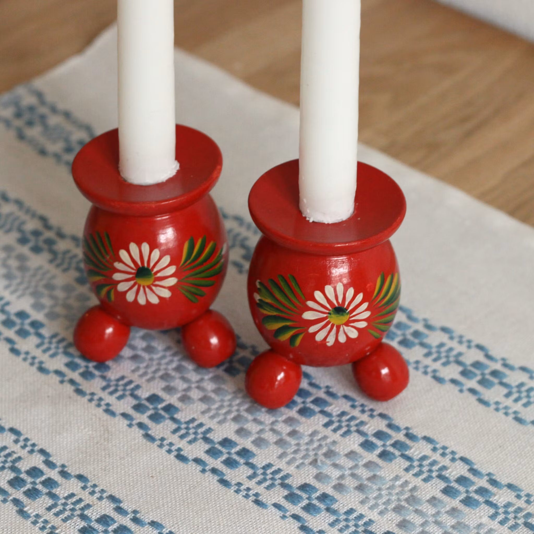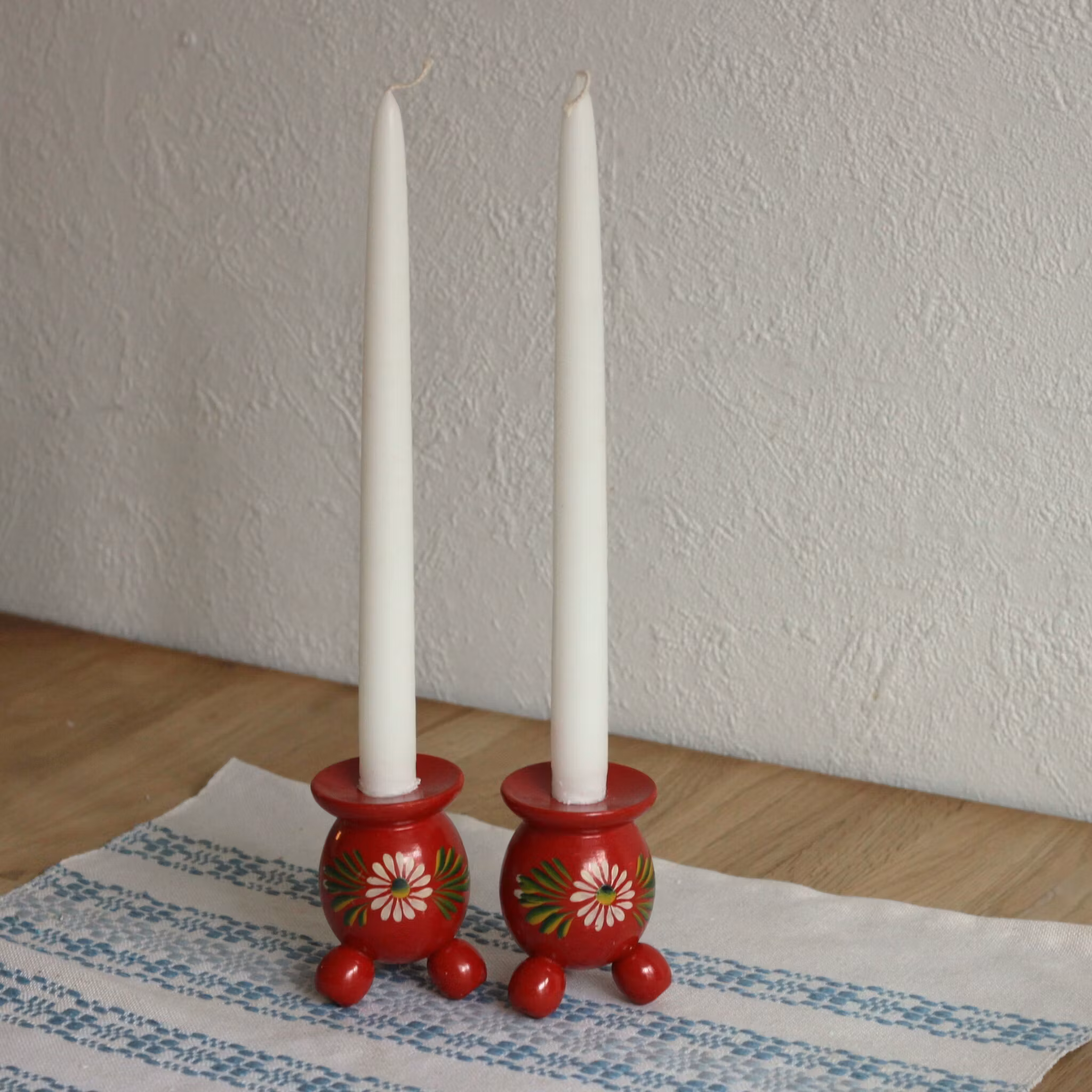 Röd klassisk rejält stor "kulljusstake" passar fint in i de flesta hem. Denna röda träljusstake passar kron- eller antikljus. Ljusstaken är ca 7.5cm hög.