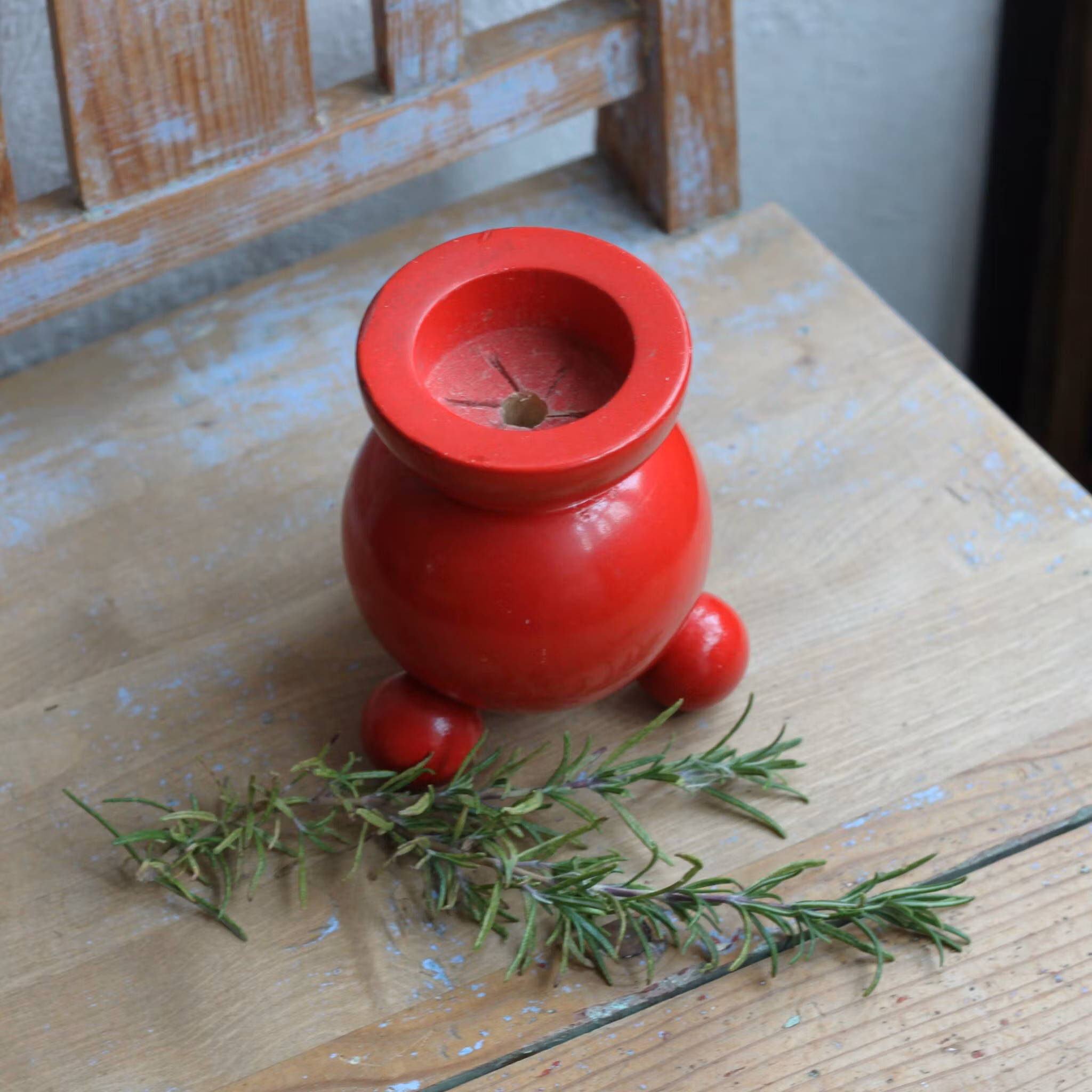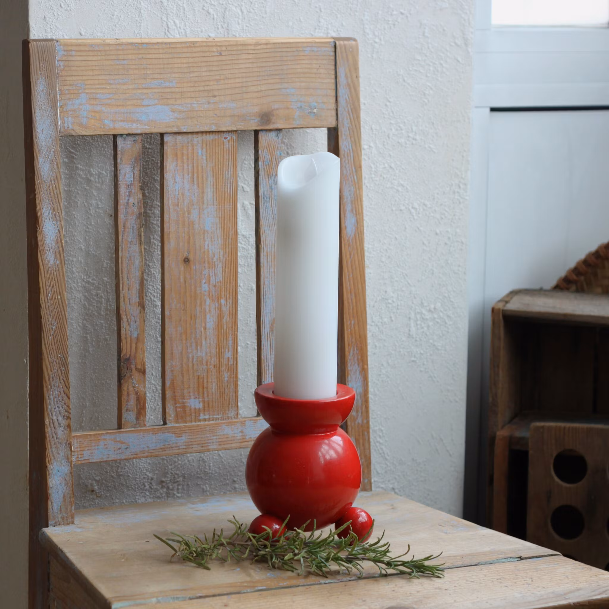 Röd klassisk rejält stor "kulljusstake" passar fint in i de flesta hem. Denna röda träljusstake passar för ett blockljus som är strax över 4.5cm i diameter. Ljusstaken är ca 11.5cm hög.