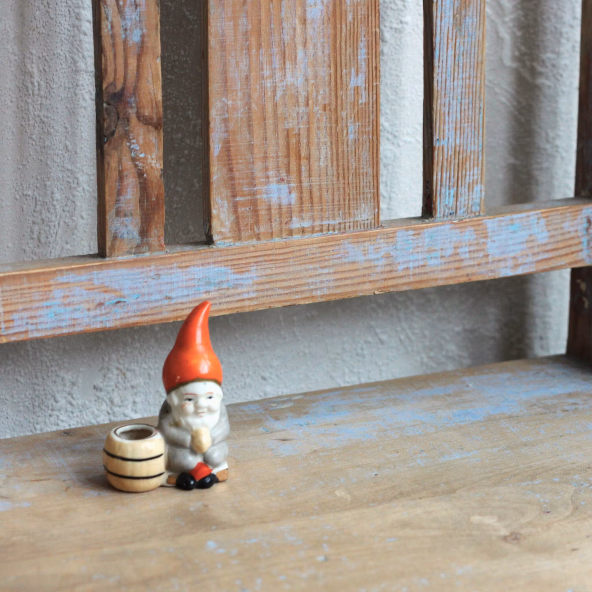 Tomte - Porslinstomte Ljusstake med en tunna
