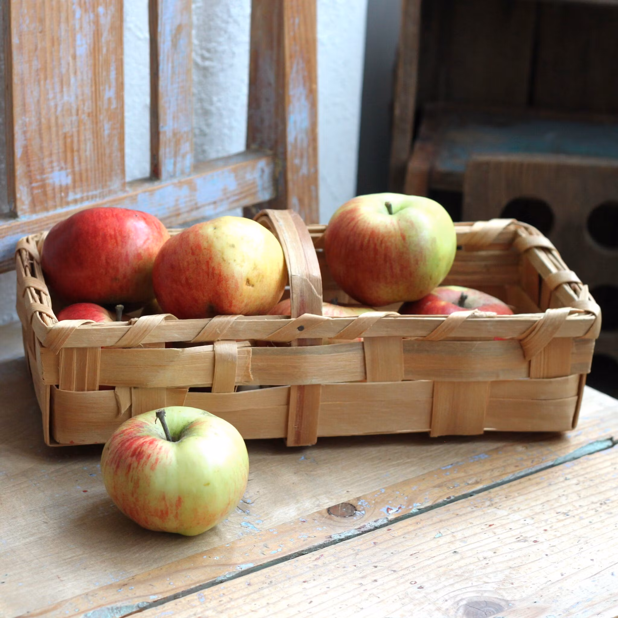 En klassisk svampkorg fast i litet format. Korgen är ca. 27cm lång 11cm bred och strax över 5cm hög handtaget oräknat. Full korg blir bara till ett par svampmackor. Korgen gör sig väldigt fint att förvara juläpplen i också, ifall det räcker att ha kanske 6stcken framme i taget.