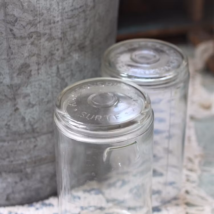 Glasburk med lock ca 19cm hög, locket inräknat. Dessa burkar är mycket praktiska till förvaring då det är enkelt att se vad som finns inuti. Förutom i köket kan dessa burkar vara fina som stilleben med vackra saker eller bara som de är, som vackra inredningsdetaljer. Ett tips för att göra något lit extra skoj med dem är att stoppa ner en ljusslinga i burken och den ha som mysbelysning.