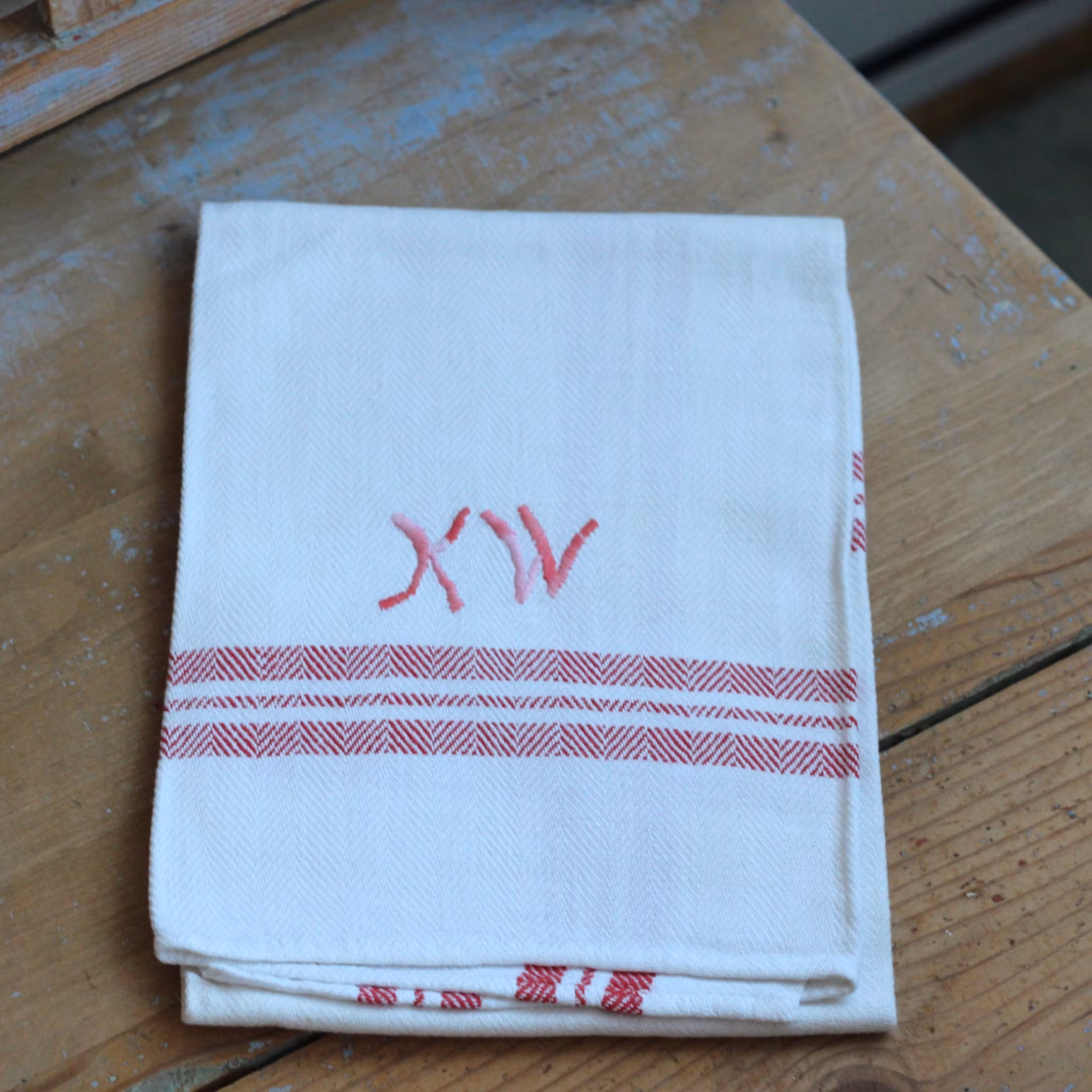Handduk - Linne Monogram KW Röd