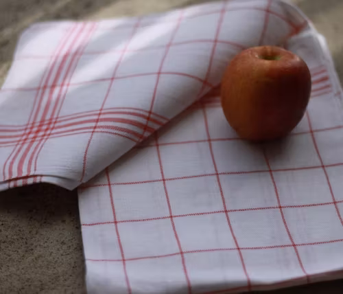 Våra kökshanddukar i bomull är rena och fina, någon kan ha en litenliten markering men det finns inga stora fläckar eller hål i dem. Vissa finns det ganska många av, andra bara en eller två. Vi tycker att det är precis lika vackert att blanda som att ha likadana. Just dessa handdukar är i en lite tunnare variant, sådana som ofta används till att torka glas.