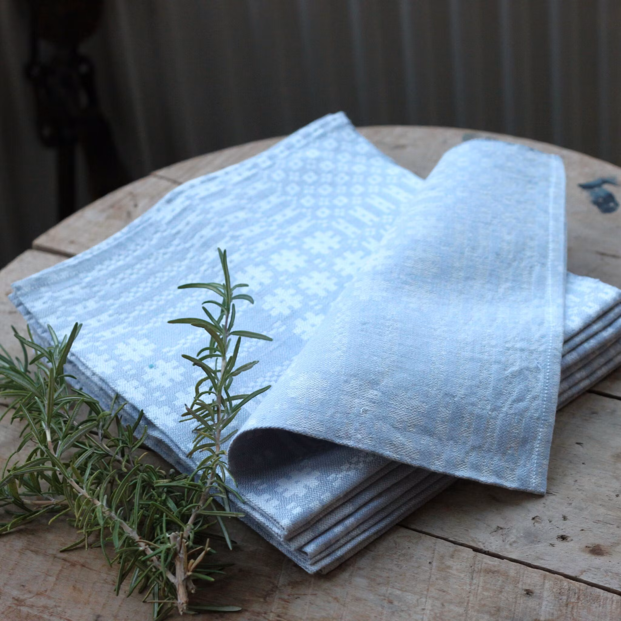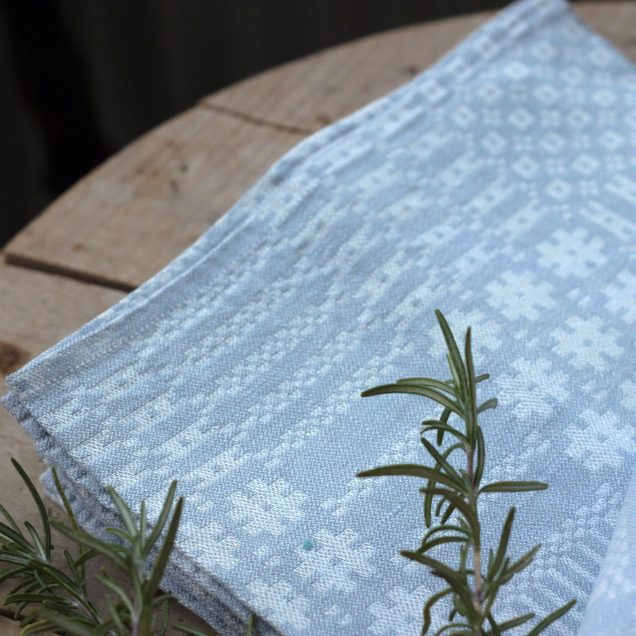 Servetter - Ljust blågrå Linneservetter mönstervävda
