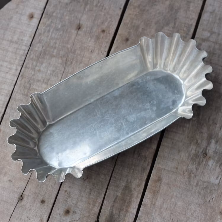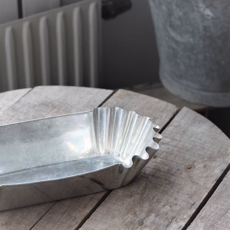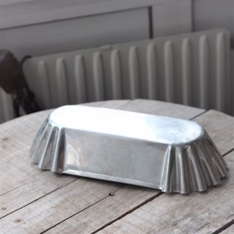 Avlång form med ett lite udda utseende och vågor i ändarna. Funkar finfint till sockerkaka men även till glass eller som tjusig förvaring. Formen är ca 12.5cm bred i överkant, 29.5cm lång på längsta stället och 5cm hög.