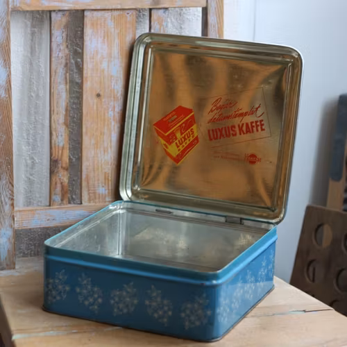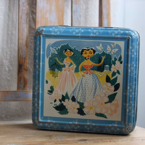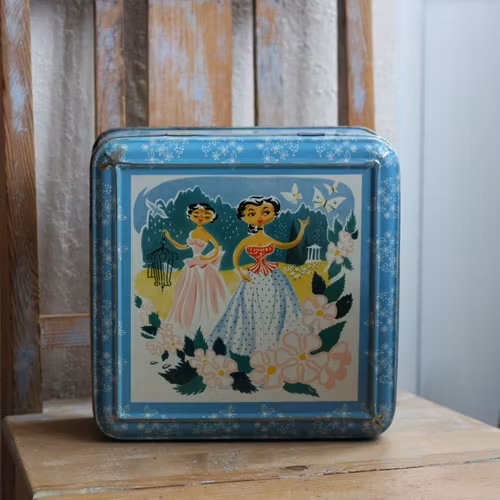 Locket på denna fina burk visar ljuvliga penséer och kanten har en söt bård. Burken 22x22cm i längd och bredd och ungefär 6cm hög. Denna modell på burk har en praktisk kant på ovansidan av locket, som gör att om man har flera burkar i samma modell så är de stadiga att stapla och står bra på varandra. Dessa burkar är perfekta som kakburk.