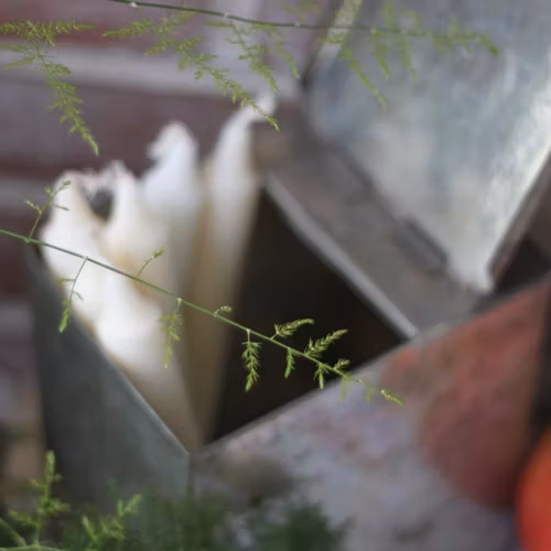 En lite ovanlig burk, "metallfärgad" och omålad. Burkens lock öppnas inte hela vägen bak och burken gör sig lika fint stående med öppningen fram som upp.