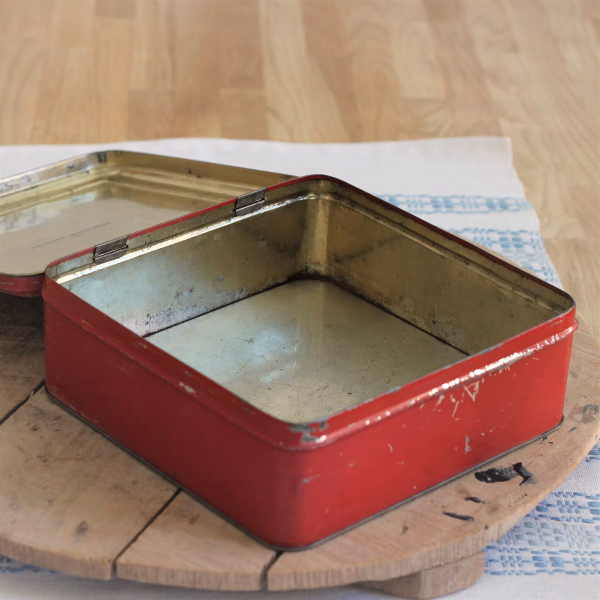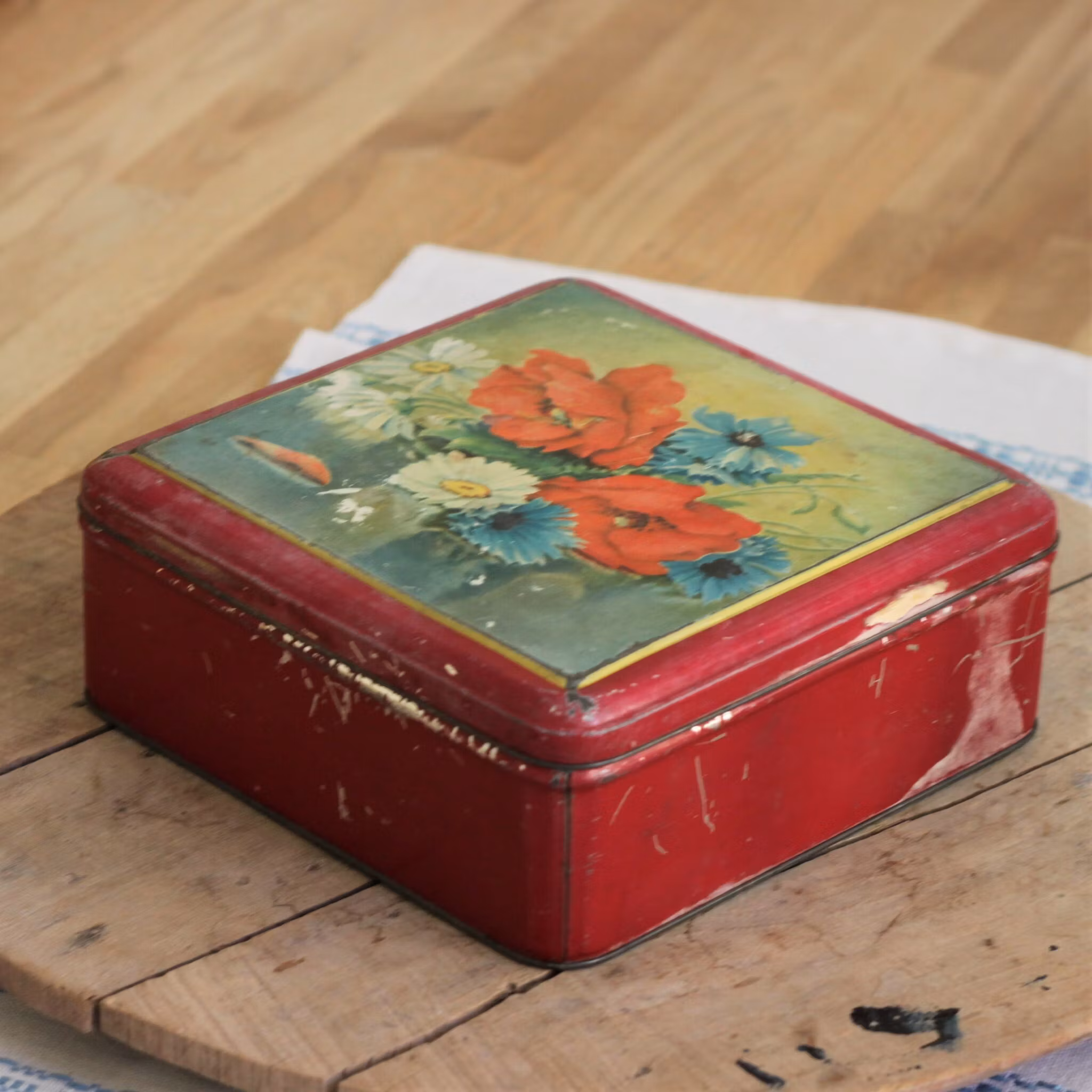 Plåtburk - Röd med Blommor
