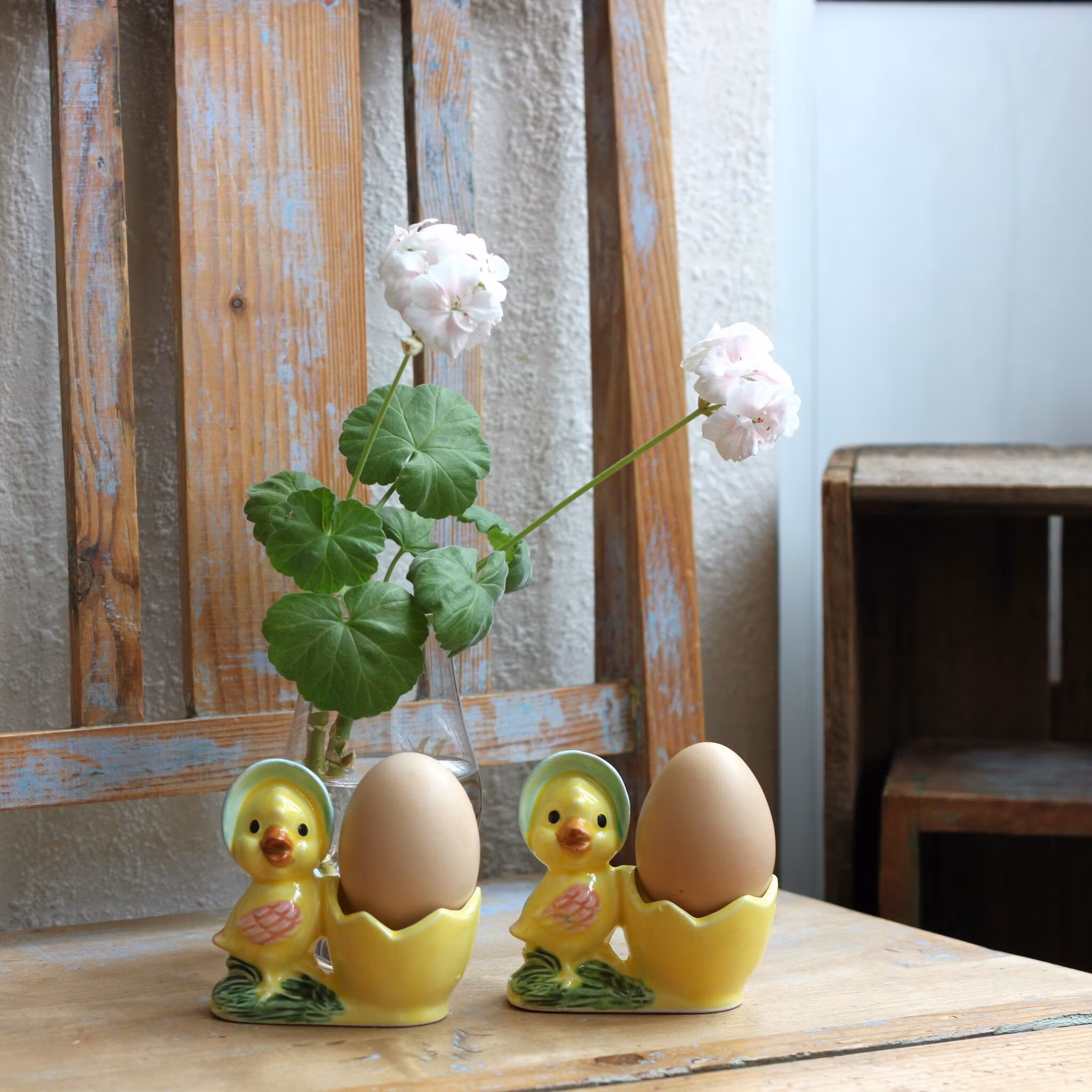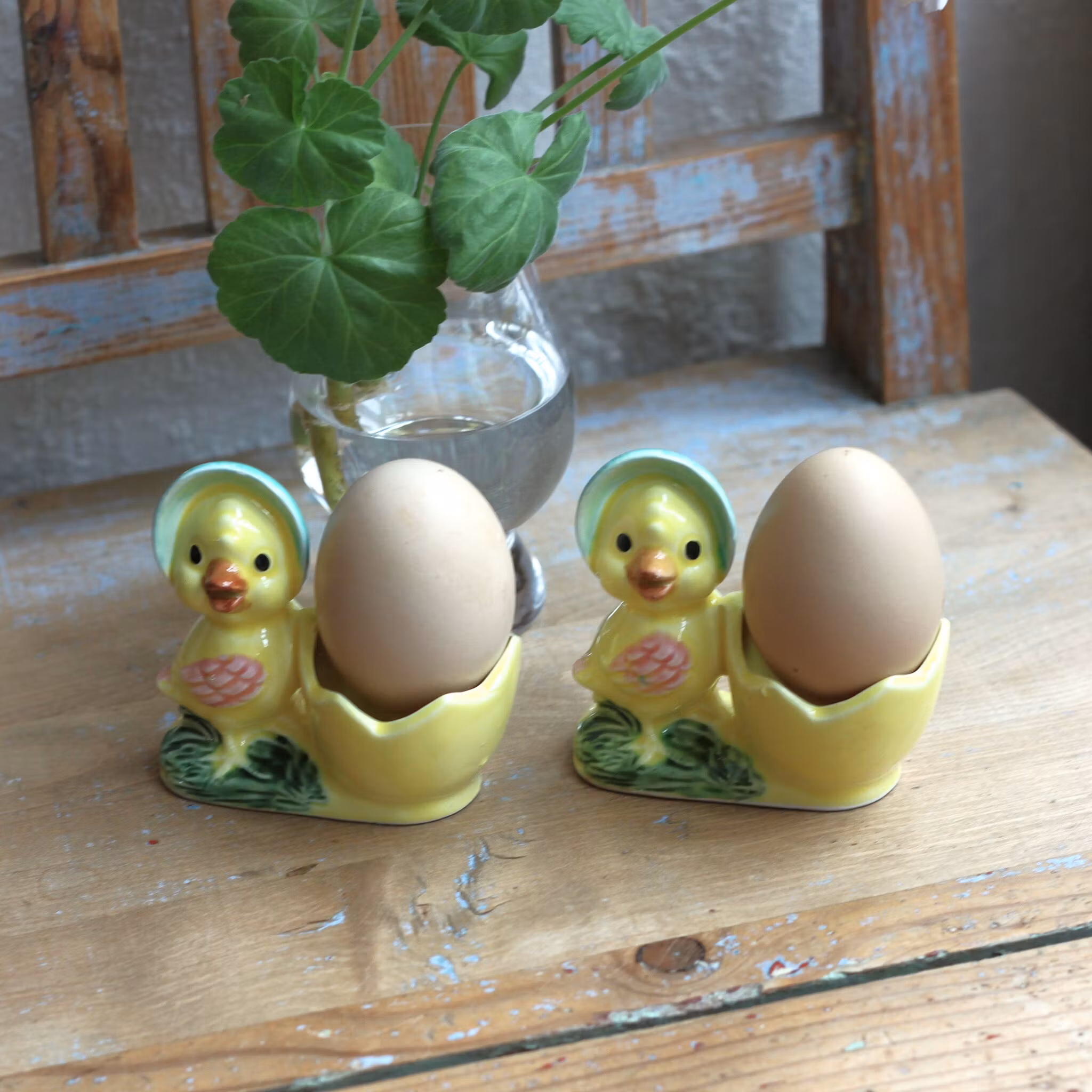Äggkoppar - Kycklingar par i porslin